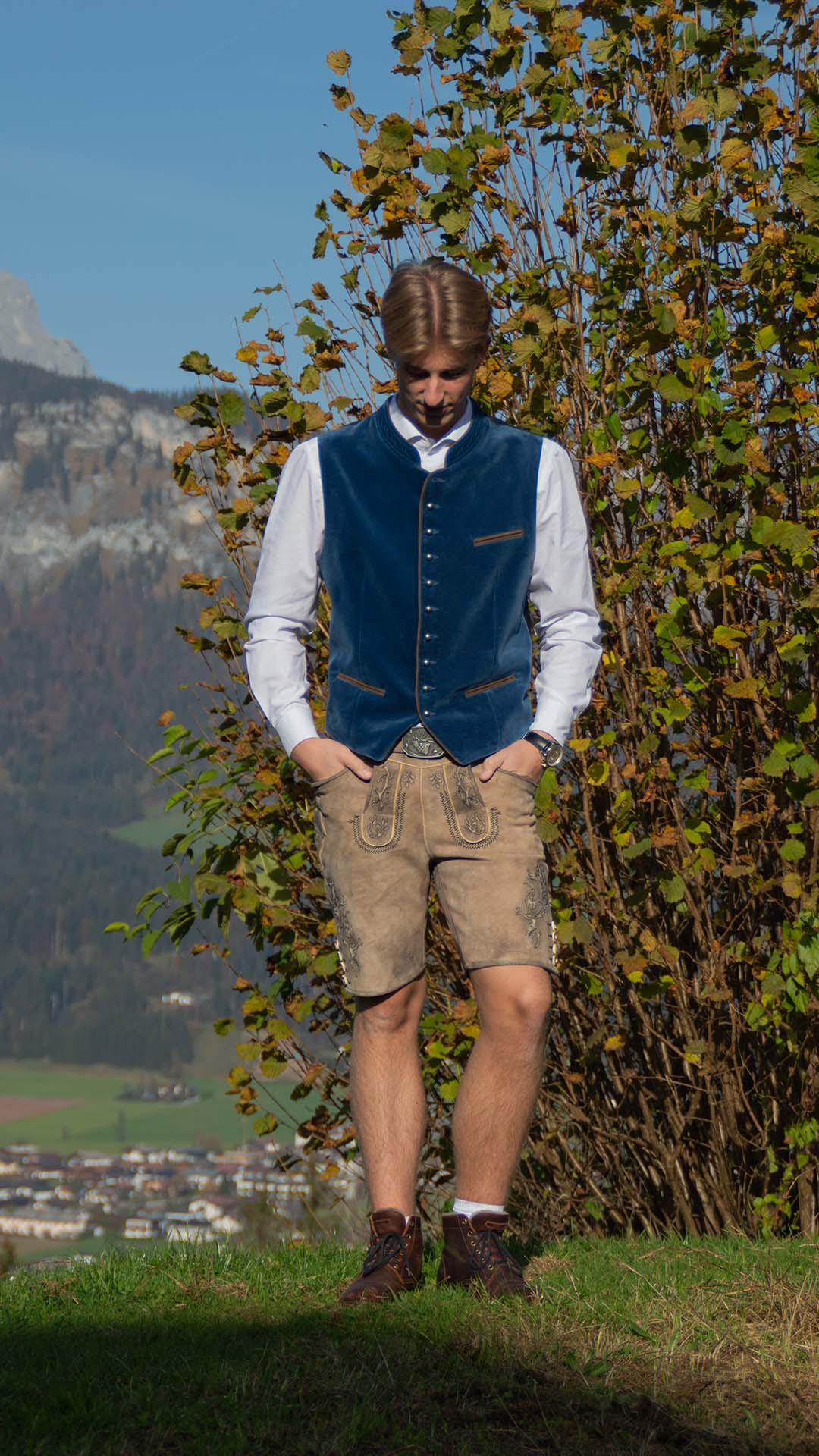 Unsere Wildbockleder, wird industriell gefertigt, bieten aber dennoch eine sehr gute Qualität. Es ist leicht, robust und eine ideale Wahl für langlebige und stilvolle Trachtenmode.